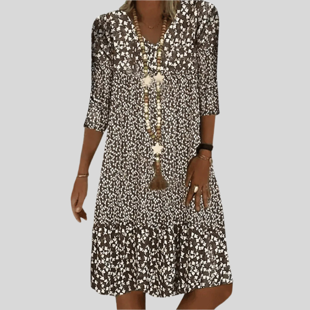 هذه الفستان متوسطة الطول يتميز بياقة على شكل حرف V جذابة وقصة أنيقة. متاح بعدة ألوان، يناسب مختلف المناسبات. تصميمه الخالد يضمن مظهراً راقياً.