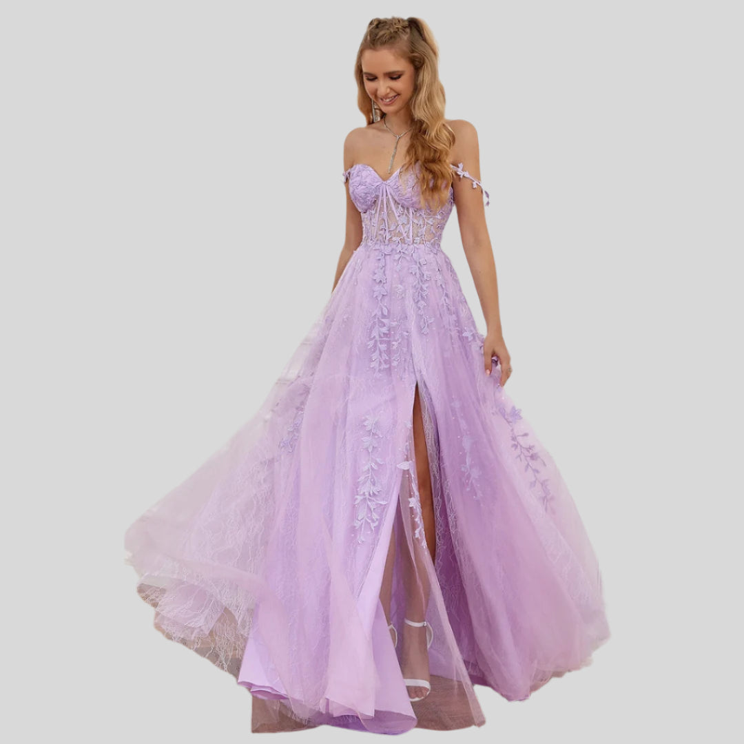 ريتا | فستان طويل أنيق بأكتاف مكشوفة