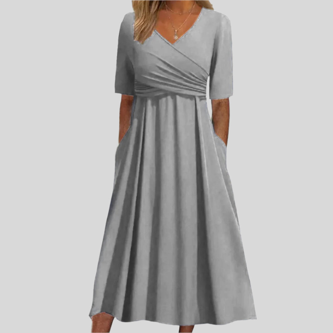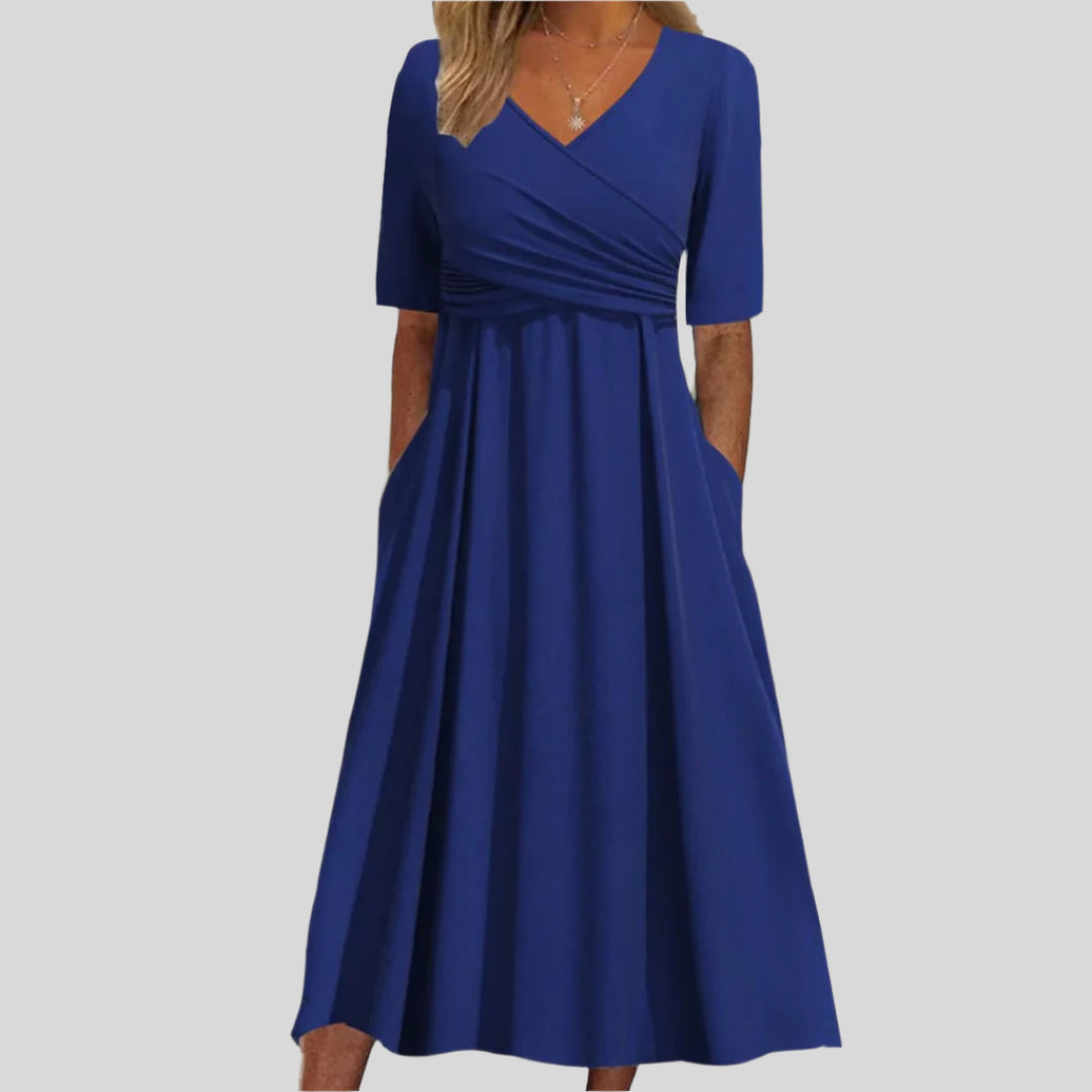 فالنتين | فستان ميدي أنيق بياقة على شكل حرف V
