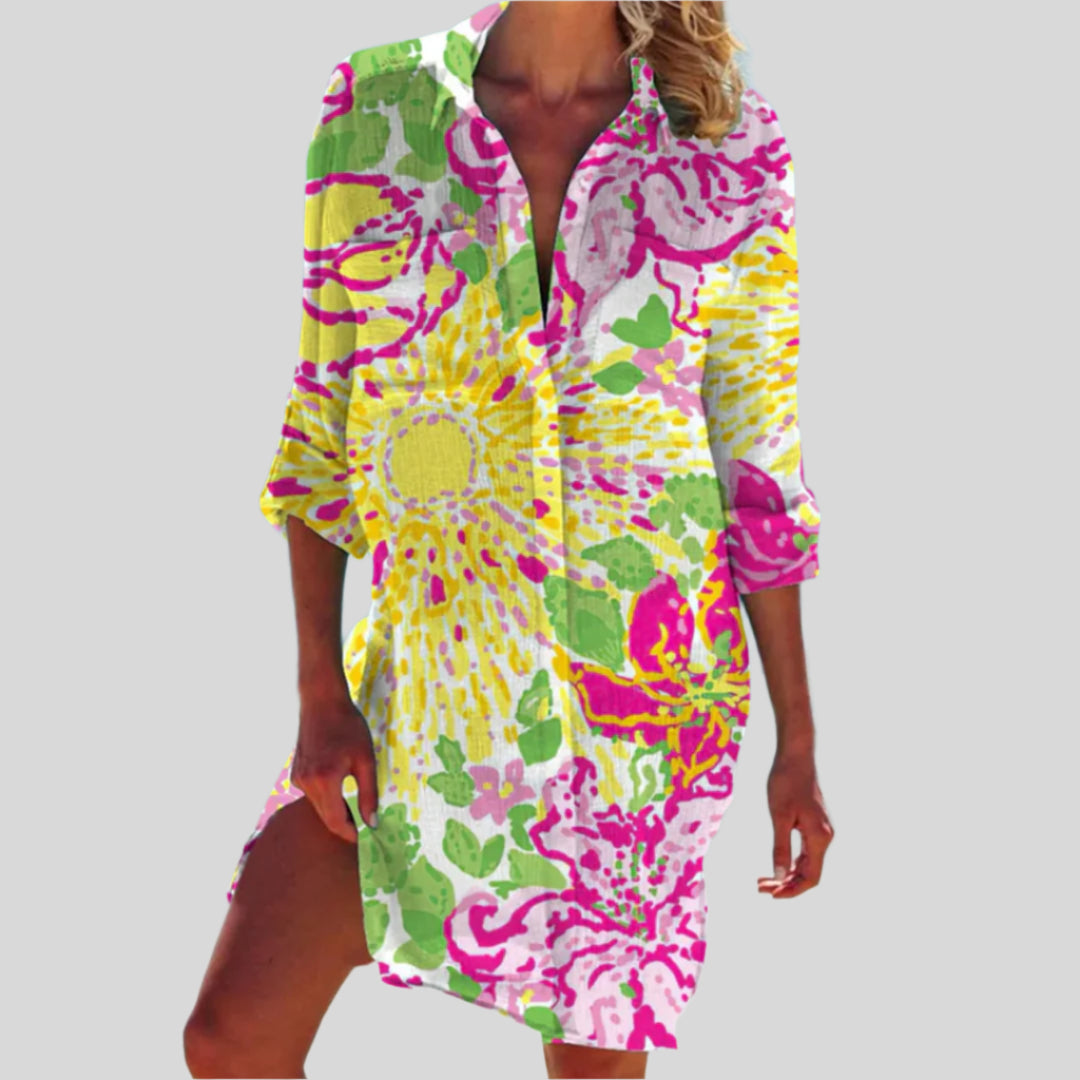 أوليفيا | فستان مزرر صيفي بأكمام طويلة