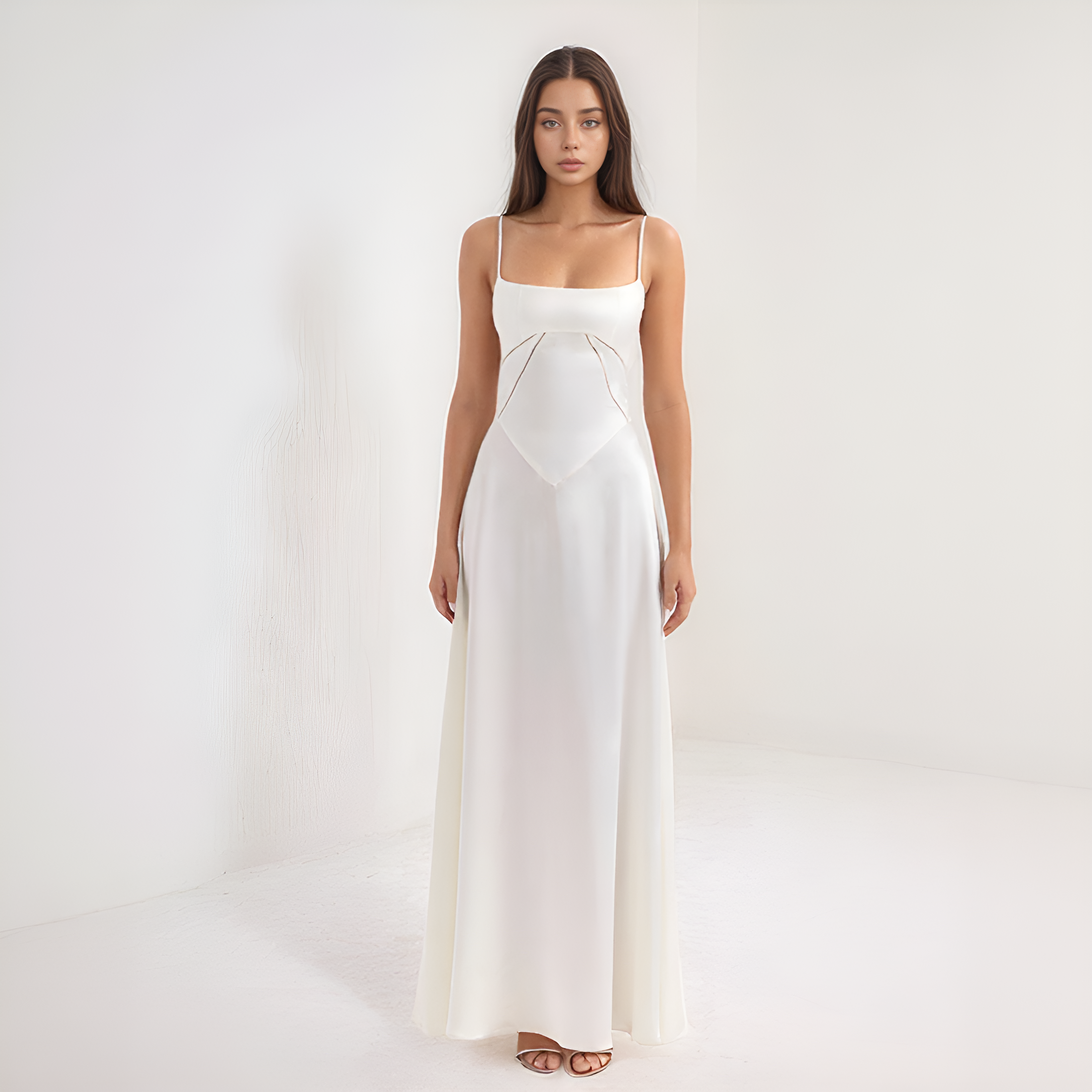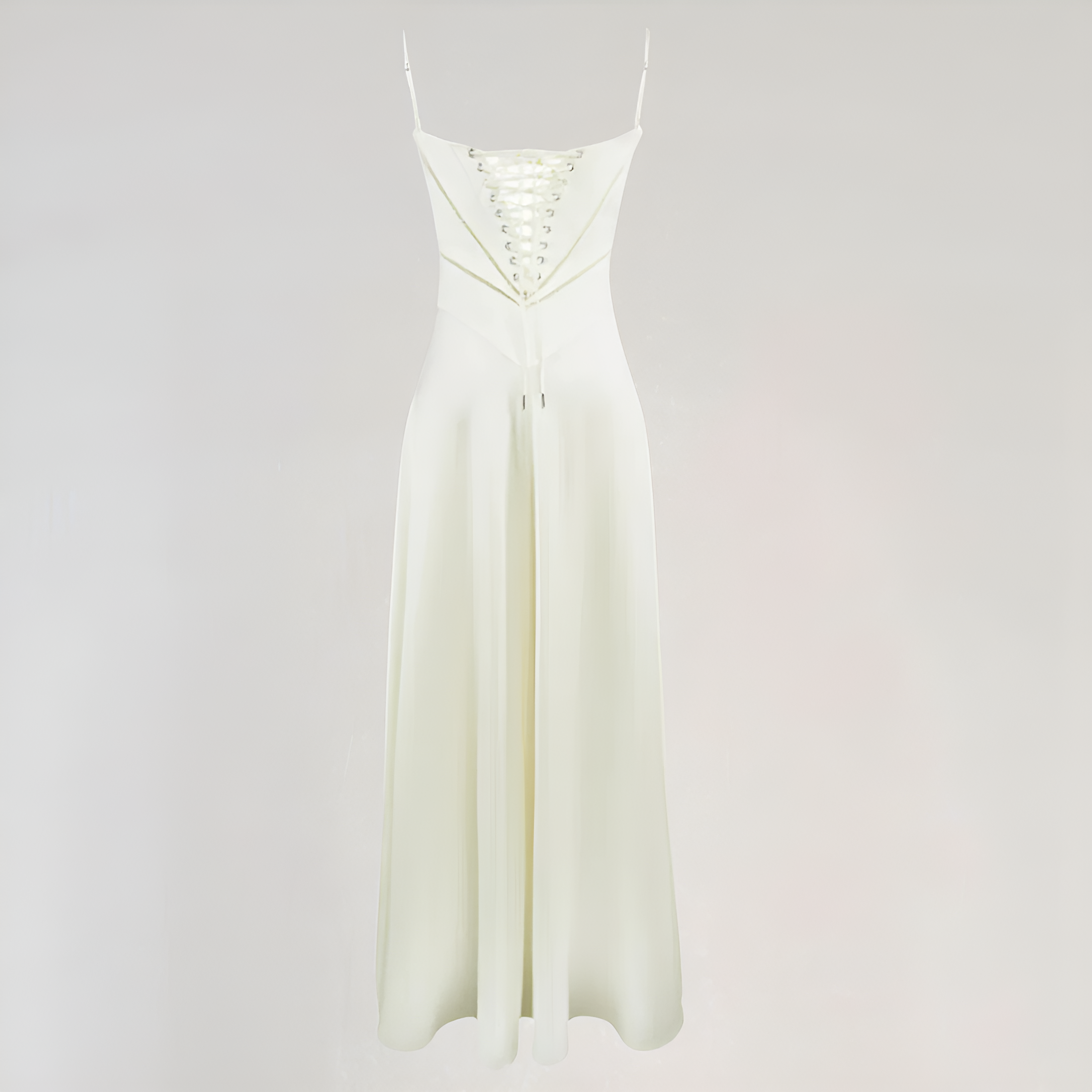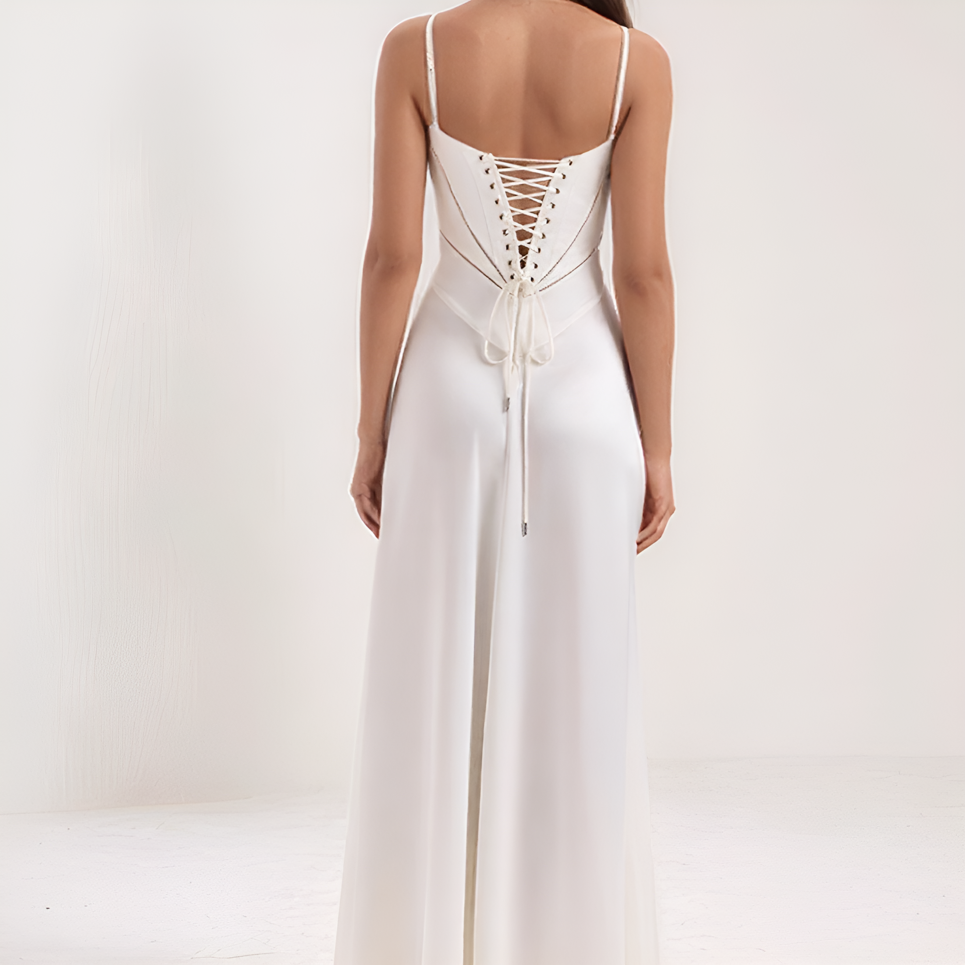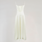 هذا الفستان الطويل يبرز القوام بفضل تصميمه على شكل كورسيه الذي يحدد الخصر بشكل رقيق. قصته السائلة تضيف حركة ورشاقة، بينما يضيف الظهر المصمم على شكل كورسيه لمسة رومانسية وهيكلية. مثالي للمناسبات، الحفلات أو الاحتفالات.