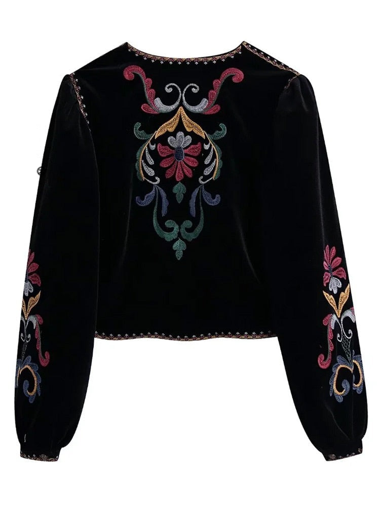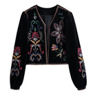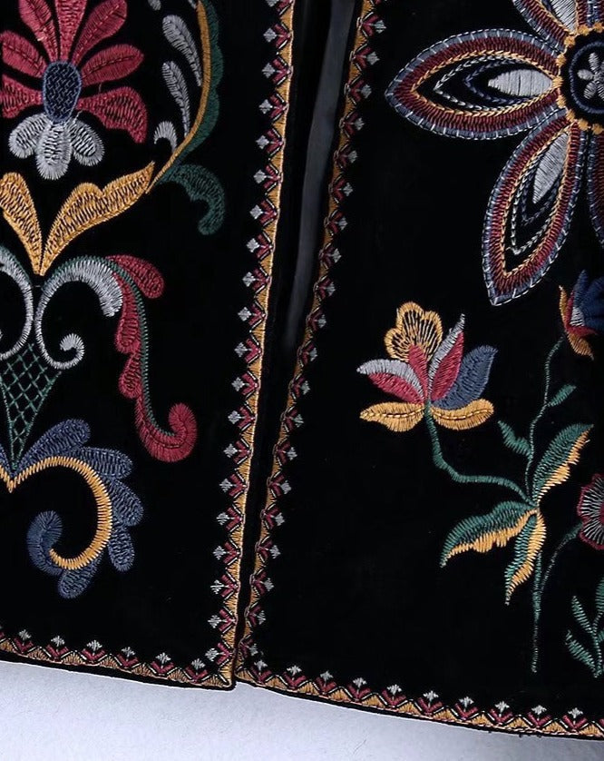 Tato krátká bunda s květinovými vzory ztělesňuje ženský vzhled plný kouzla a charakteru. Její barevné vzory se vyjímají na hlubokém černém pozadí, čímž vytvářejí jemný a harmonický kontrast. Lehounká a příjemná na nošení, snadno se kombinuje s různými outfity pro moderní a rafinovaný styl.