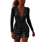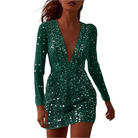 Tämä kimaltava mekko korostaa siluettia sen istuvan ja hienostuneen leikkauksen ansiosta. Sen säihkeät yksityiskohdat paljeteista tuovat hienostunutta kiiltoa, mikä on ihanteellinen katseiden vangitsemiseen iltaisin tai elegantteissa tapahtumissa.