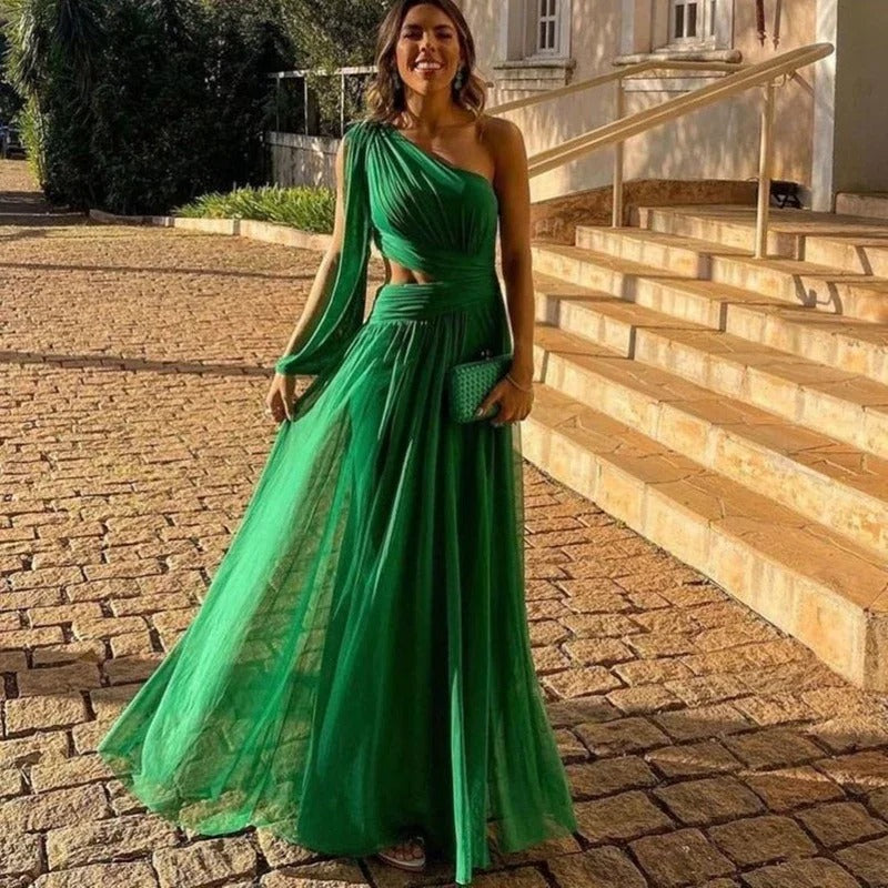 Wafa | Maxi Pliseerattu Mekko Epäsymmetrinen Olka – Eleganssia ja Moderniutta