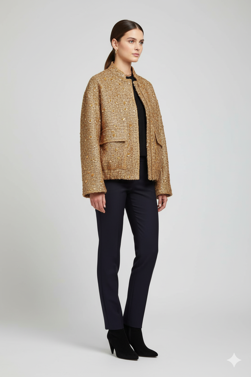 WARUM DIE GOLDENE KURZJACKE WÄHLEN — GLÄNZENDE ELEGANZ & FESTLICHER CHARME ?