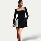 Cette robe à col carré incarne le parfait équilibre entre simplicité et sophistication. Sa coupe structurée flatte la silhouette, tandis que les manches longues ajoutent une touche de grâce intemporelle. Parfaite pour les occasions habillées ou les soirées élégantes.