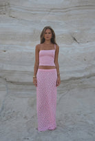 בלנדין | Ensemble Rayé ורוד – טופ ללא רצועות וחצאית ארוכה