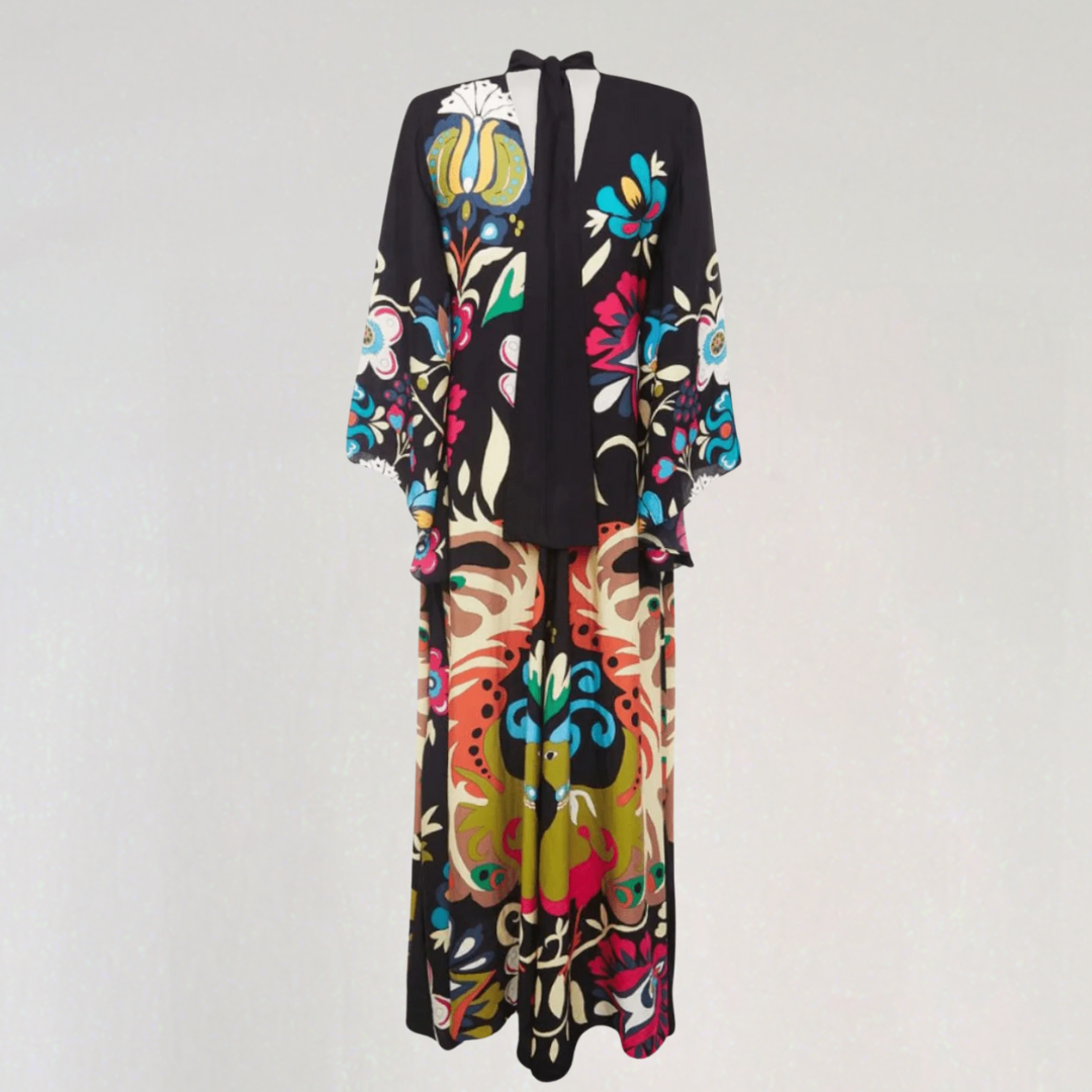 אינאיה | סט קימונו – הדפס בוהמייני ומכנסיים רחבים