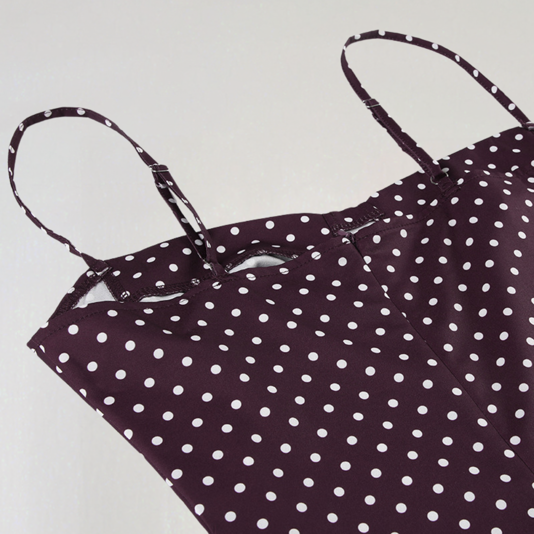 ביאטריס | שמלה קצרה עם נקודות – דגם שוקולד לסגנון וינטג' שיק