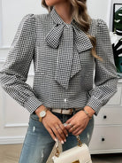 חולצה זו מציגה דפוס משבצות נצחי המועשר בפרט של קשר אלגנטי. השרוולים הארוכים שלה הופכים אותה לאידיאלית לכל העונות. קל לשלב אותה, היא מתאימה לאירועים מזדמנים וגם מקצועיים.