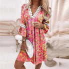 Cette robe présente un motif floral vibrant avec des détails en dentelle délicate. Sa coupe décontractée et son tissu léger assurent un confort optimal.