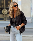このグリッター付きのジップジャケットは、スタイルと快適さを兼ね備えています。リラックスしたシルエットは様々なシーンに適応します。日常のコーディネートを引き立てるのに最適です。