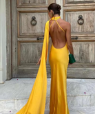 Jade-kjolen fanger oppmerksomheten med sitt elegante draperte design og lange snitt som fremhever silhuetten. Designet og den ryggfrie stilen viser skuldrene med raffinement, mens et diskret bånd tilfører en sofistikert femininitet. Laget for store anledninger, kombinerer den glamorøs stil og komfort med letthet.