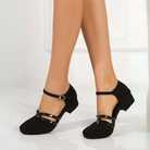 Tieto uzavreté topánky na širokom podpätku s nastaviteľným remienkom kombinujú rafinovanosť a pohodlie na každodenné nosenie. Ich štýlový dizajn zvýrazňuje každý outfit, zatiaľ čo polstrovaná podrážka zabezpečuje trvalý pocit pohody.